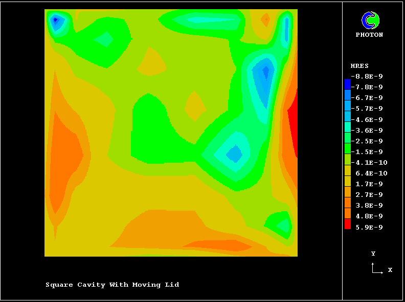 Because the solution is well-converged, the values of both the residuals and the corrections are very small. This accounts for the irregularity of the residual field, of which the values have been reduced to the round-off error of the computer.