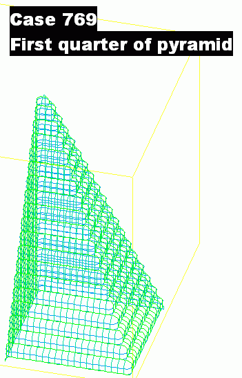 6. Finally it should be mentioned that the four quarter-pyramids have all been given the same name, infob_1, in the case-769 q1. There is no objection to this; but, had it been desired to render display easier by giving each a diferent value of MARK, individual names would have been required.