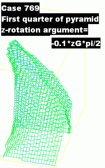 5. Now that the secret has been revealed, it is obvious that there is no limit to the variety of shapes which can be created. Here for example is a shape created by making the z-rotation argument decrease as zG increases: