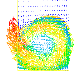 Of the two images below, that on the left displays the shape of the apertures by way of MARK contours, while that on the right shows the associated velocity vectors.