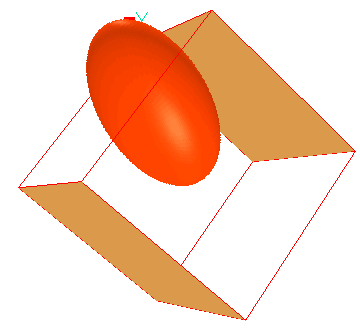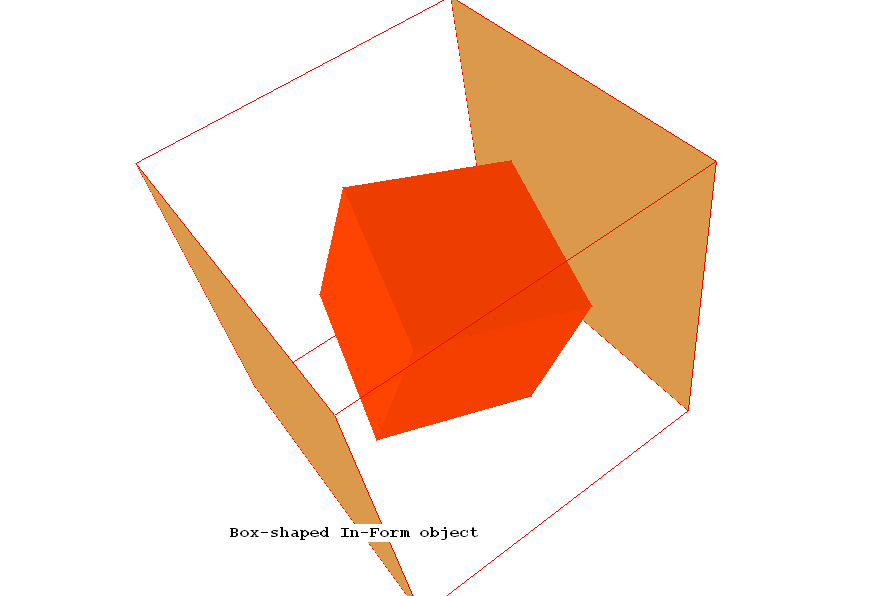 Library case 383 illustrates the use of the box function for the creation of a box in a cubical domain, with all its rotations equal to 0.25 radians, by means of the following statements:
