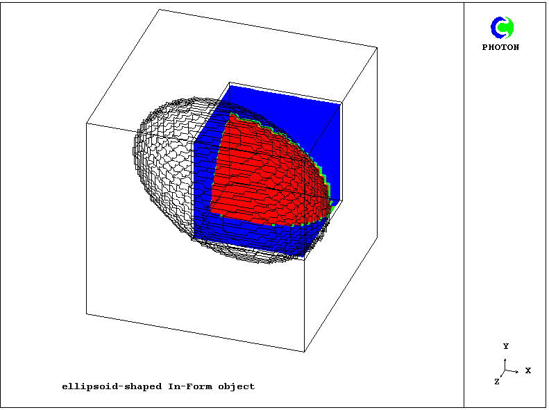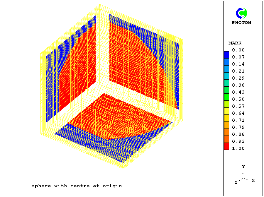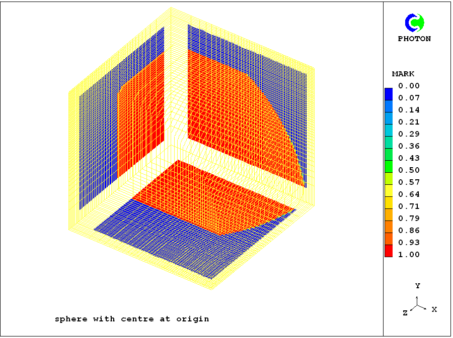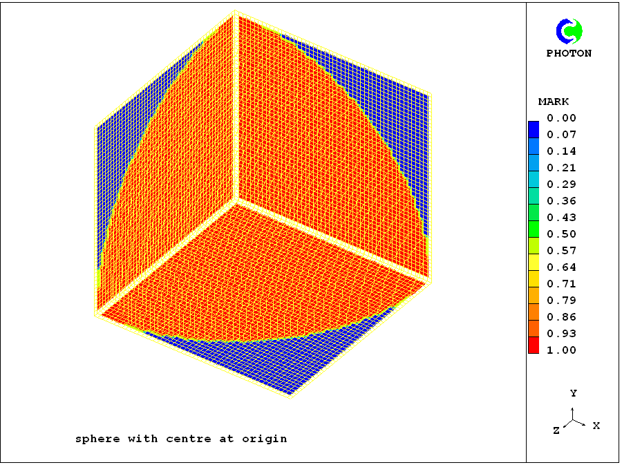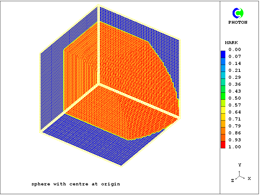 Here, in order to make its shape and position visible in PHOTON and the VR VIEWER, the variable MARK has been stored and given the value of 1.0 for all the cells enclosed by the object.