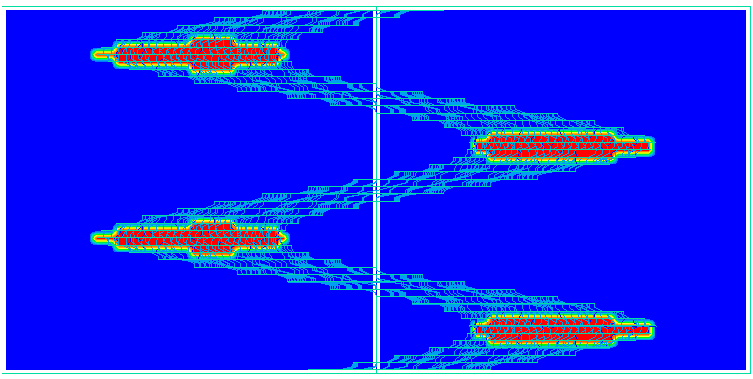 When the size of the patch is reduced by 20% and 40% respectively in the y- and z-directions, the corresponding images are those shown below, that on the left corresonding to use of an indicial patch and that on the right to a 'dot-patch'. They are of course identical.
