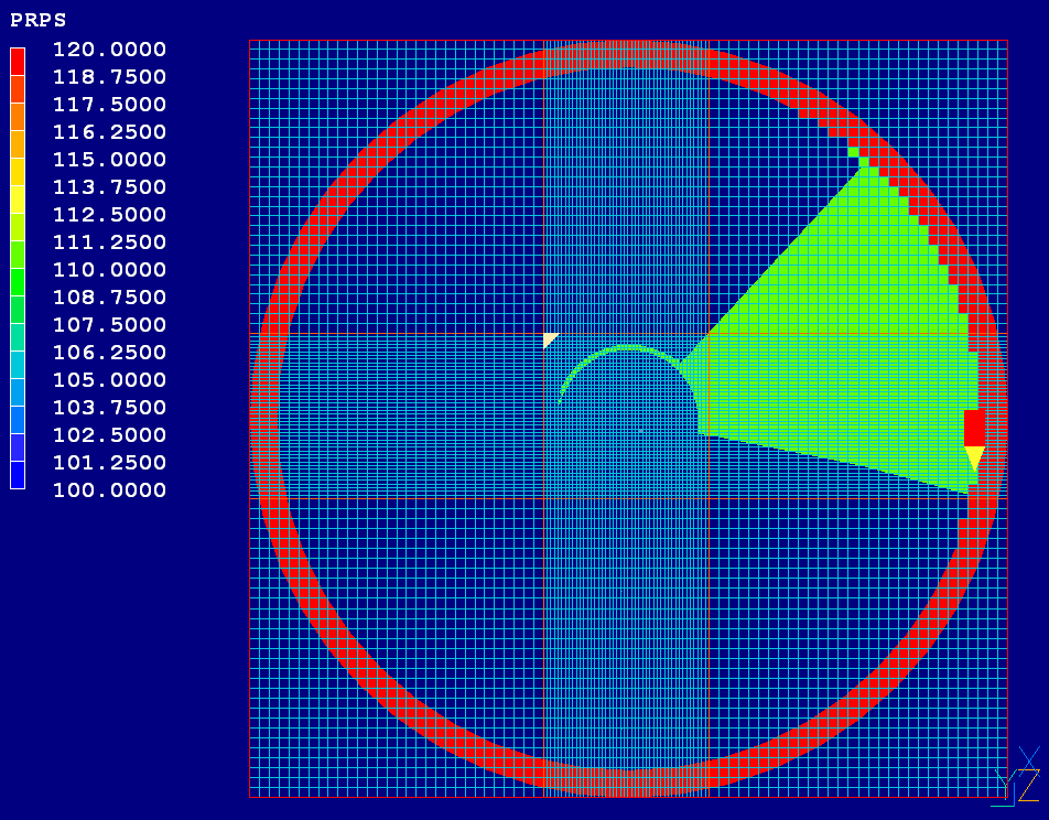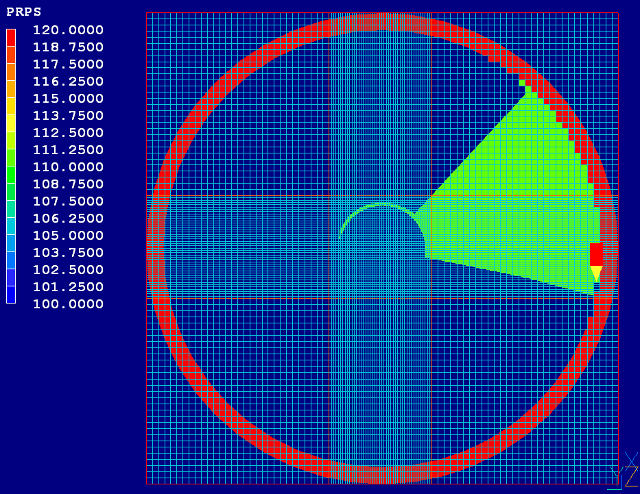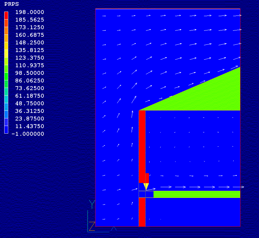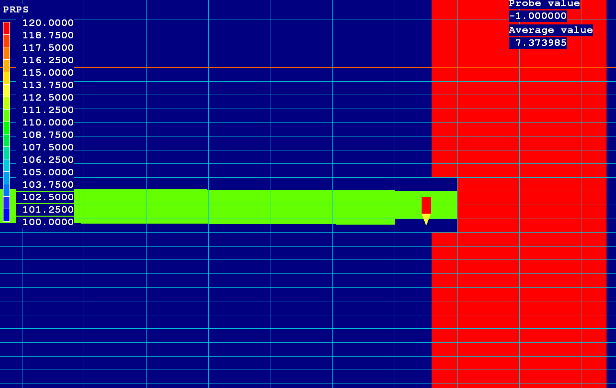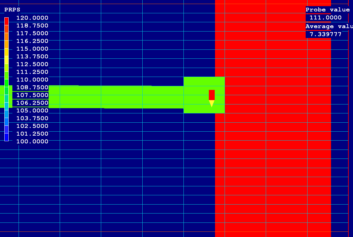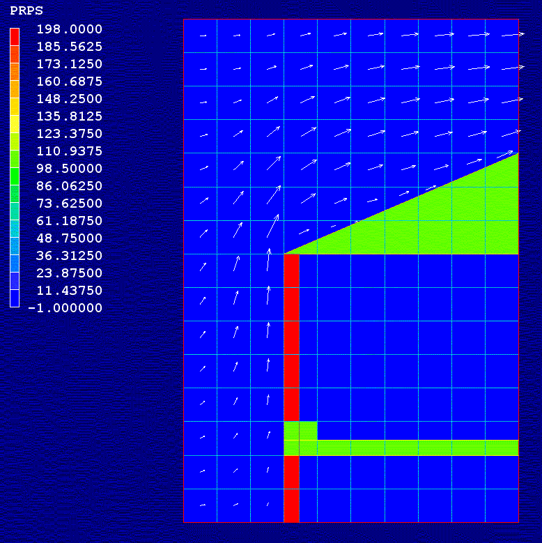 It means the cell (4,3,1) in domain 1 will be blocked by object "FLOOR" ("none" is in the place of limb name, since there is no limb name in this example). Of course the cell must be within the box of the object in order to have correct INIVAL and source attached to the object. The result can be seen below after repairing