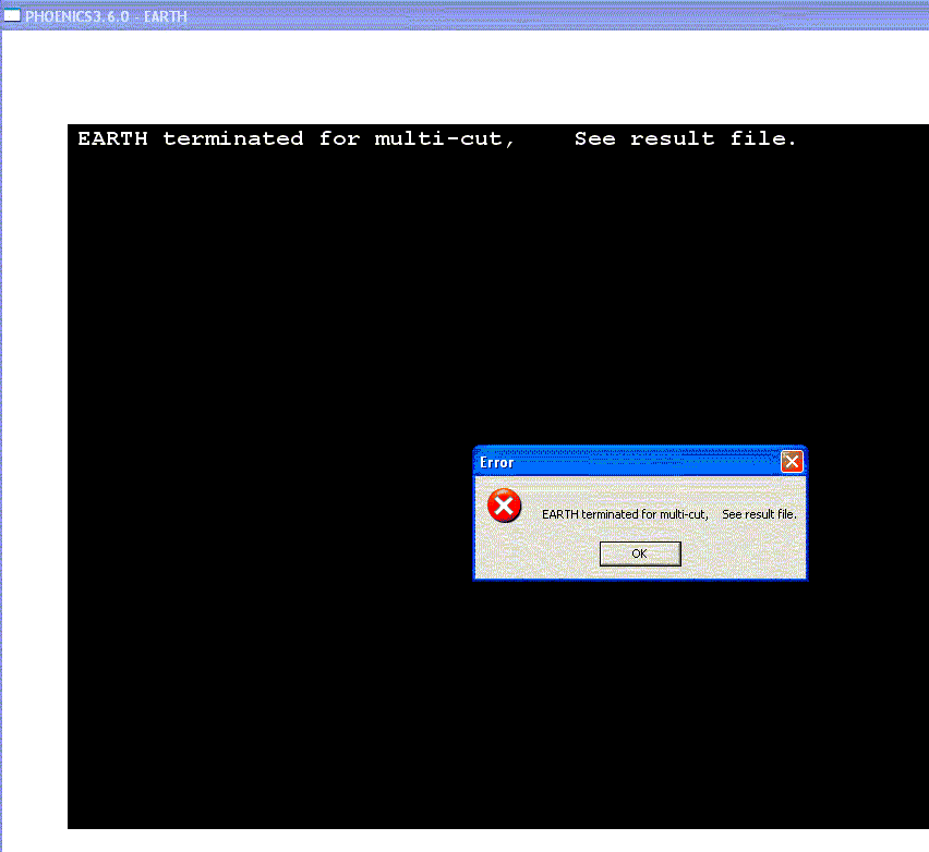 Take option 2 creating the file PBC_TESTand put the message "STOP IF MULTI-CUT" in it. EARTH was terminated with popping up a message window as below.