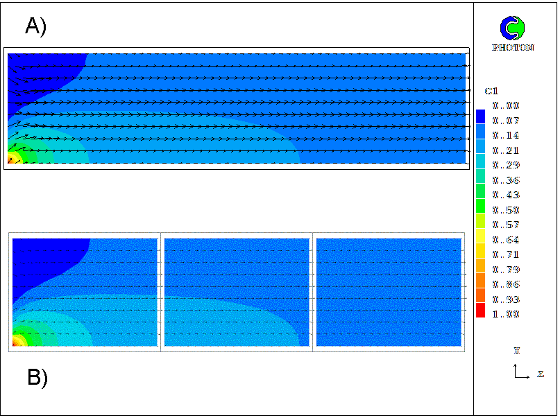 HIGHTRO1 and EASTTRO1 transfer objects on high and east boundaries are formed at the end of the first run by means two '(export' In-Form statements. They store values of outlet mass flux and concentration on this boundaries for transfer them in second and third run.--------------------- ! ! ! ! ! ! ! 3rd run ! 4th run ! ! ! ! W1 ! ! ! --> ----------+---------- ! ! ! ! ! ! ! 1st run ! 2nd run ! ! ! ! X ! ! ! ! ! --------------------- ! ^ !----- Z /!\ ! !U1