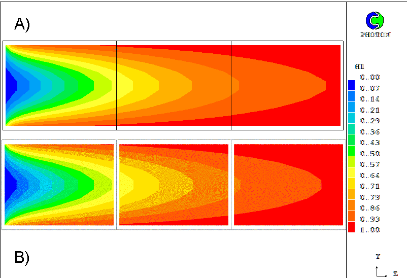 The values of variables h1 and c1 near the wall calculated in the second and third runs differ by respectively 3 and 2 %.