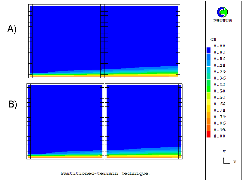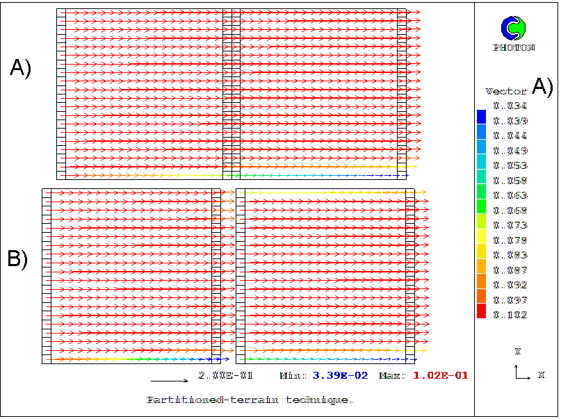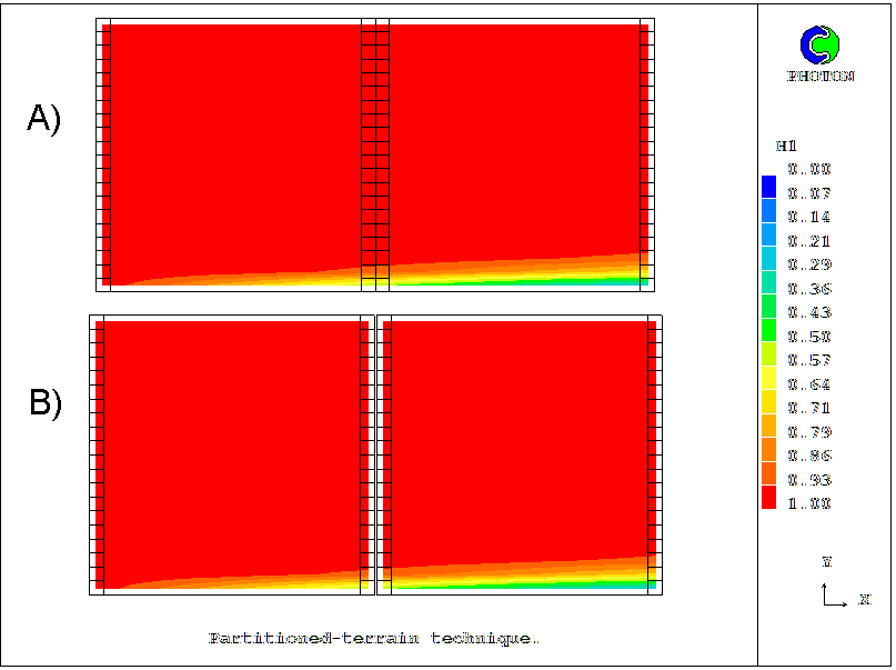 The third run simulate flow in whole area without the domain-partitioning technique for comparison with previous runs.