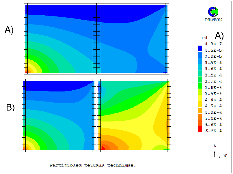 Comparison of results of calculations with a domain-partitioning technique and without it are shown in the next pictures :