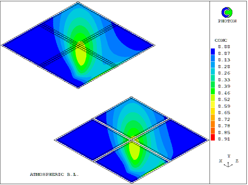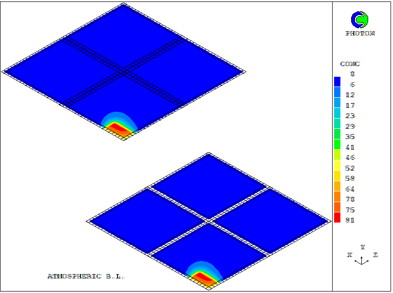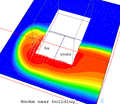 The second q1 file, case 861, simulates the distribution of smoke outside the building: