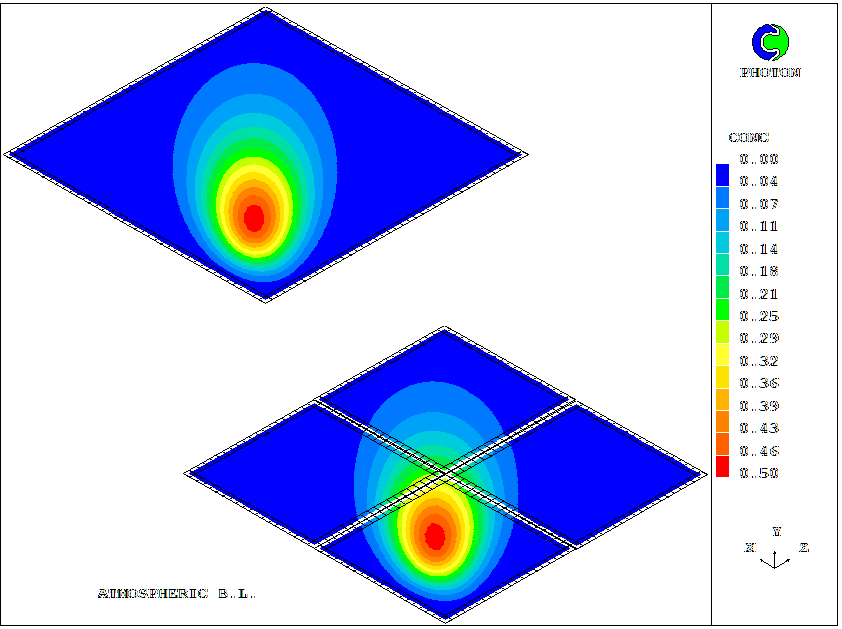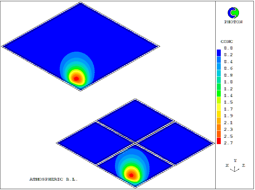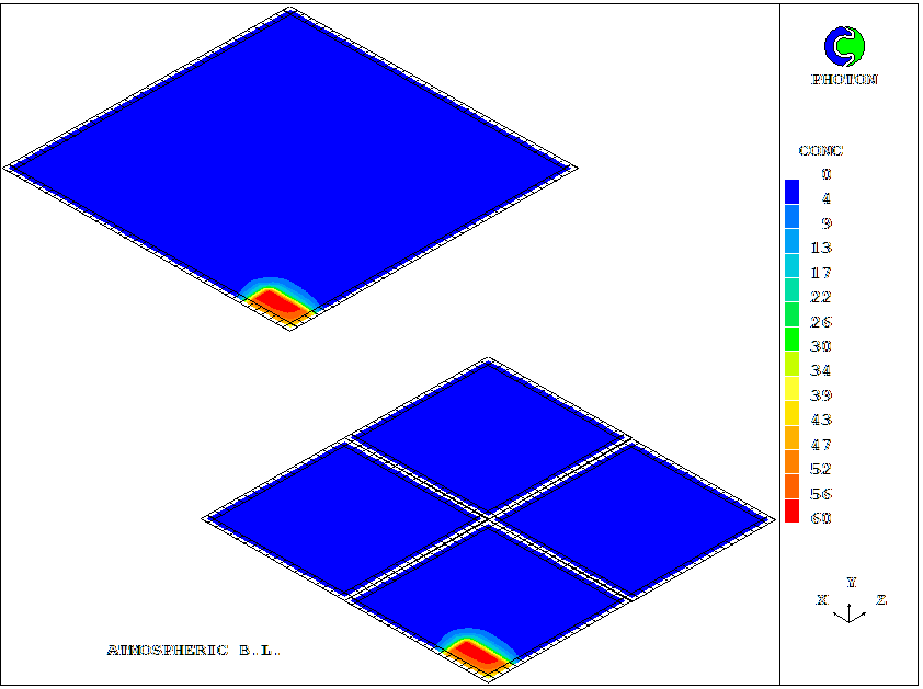 This case explores unsteady distribution of pollution at a large region of the ground.