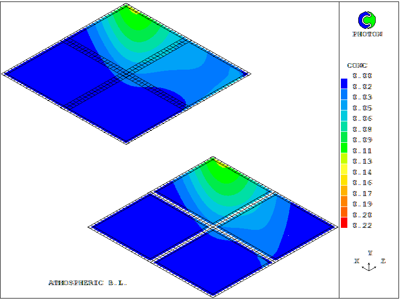 The wind profile at inlet boundaries is set by means of In-Form statements as a logarithmic velocity profile.