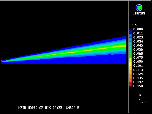 A 40-fluid model is employed to simulate the plane turbulent mixing layer.