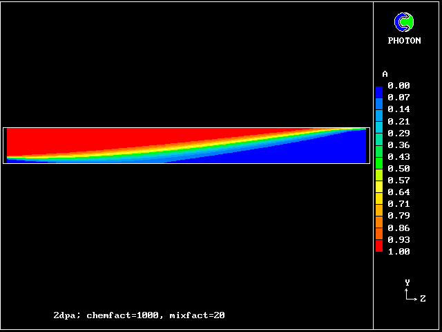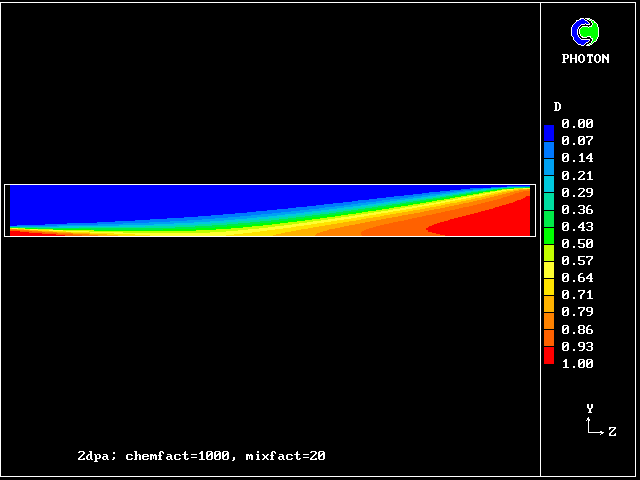 CHEMRATE (here called chemfact) is large. This implies that the flame is mixing-rate limited.