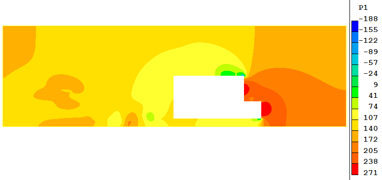 Inspection of the corresponding last-change values show that the domain-minimum values of pressure are still changing at the rate of 1.96 pascal per sweep; and that the minimum pressure (-5.26E3) is still a long way from the -4.66E3 pascals shown in the previous calculation.