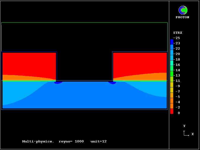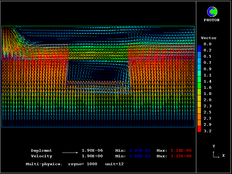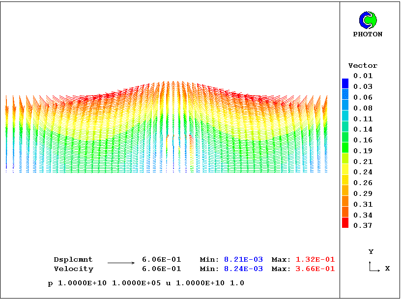 Finally, deflection is shown of a sea-bed structure, resulting from the