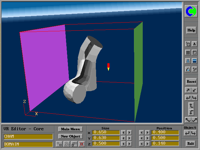 Once all the data have been inserted, and the user is satisfied that the problem specified is the one which he wants to solve, all that should be necessary is to click on the EXIT button; then the data should be exported to the equation solver; and, after the requisite "number-crunching" time, the results should be returned to the VR Interface.