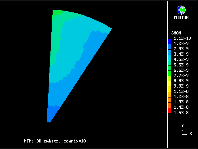 This subject is a large one, which cannot be sufficiently discussed in the present context. It must therefore suffice to state that predictions of smoke (or NOX) production are totally different for single- and for multi-fluid models. An example follows.