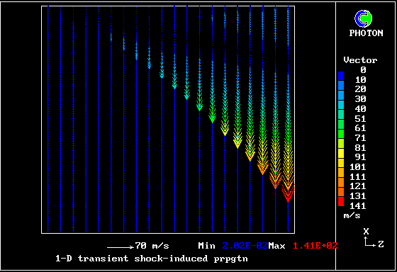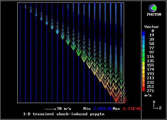 Velocity vectors of the hotter gas, which has been more greatly accelerated