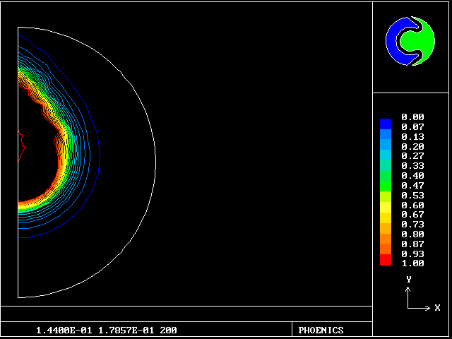 A PHOENICS simulation of such a flame now follows.