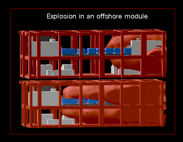 In offshore-platform modules, the gas mixtures, if they burn, must