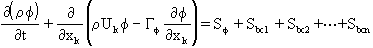In PHOENICS, boundary conditions and sources appear on the r.h.s. of the differential equation for a variable f. Thus: