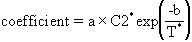 where a and b are empirical constants, C2 is the mass fraction of another species, and T is the temperature.
