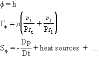 are the turbulent and laminar viscosities, and Prt, Prl are the