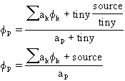 In correction form, the sources are replaced by the errors in the real equation, and the coefficients may be only approximate. The corrections tend to zero as convergence is approached, reducing the possibility of round-off errors affecting the solution.