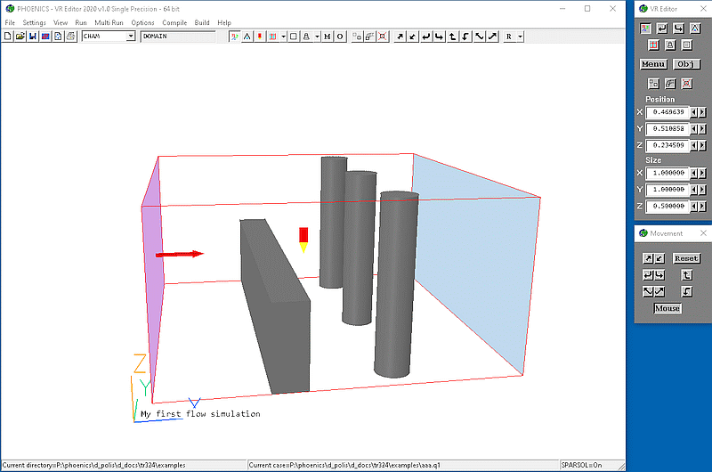 The Virtual-Reality user interface assists users to set up flow-simulation calculations, without having to learn the PHOENICS Input Language. In this data-input mode, it is called the VR-Editor.