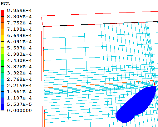 fraction of HCl is 1.e-5 with wind directions of 90 degrees on the left and 45
