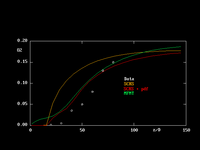Figure 5. The centre-line distribution of oxygen mass fraction: comparison with the results of Razdan and Stevens.