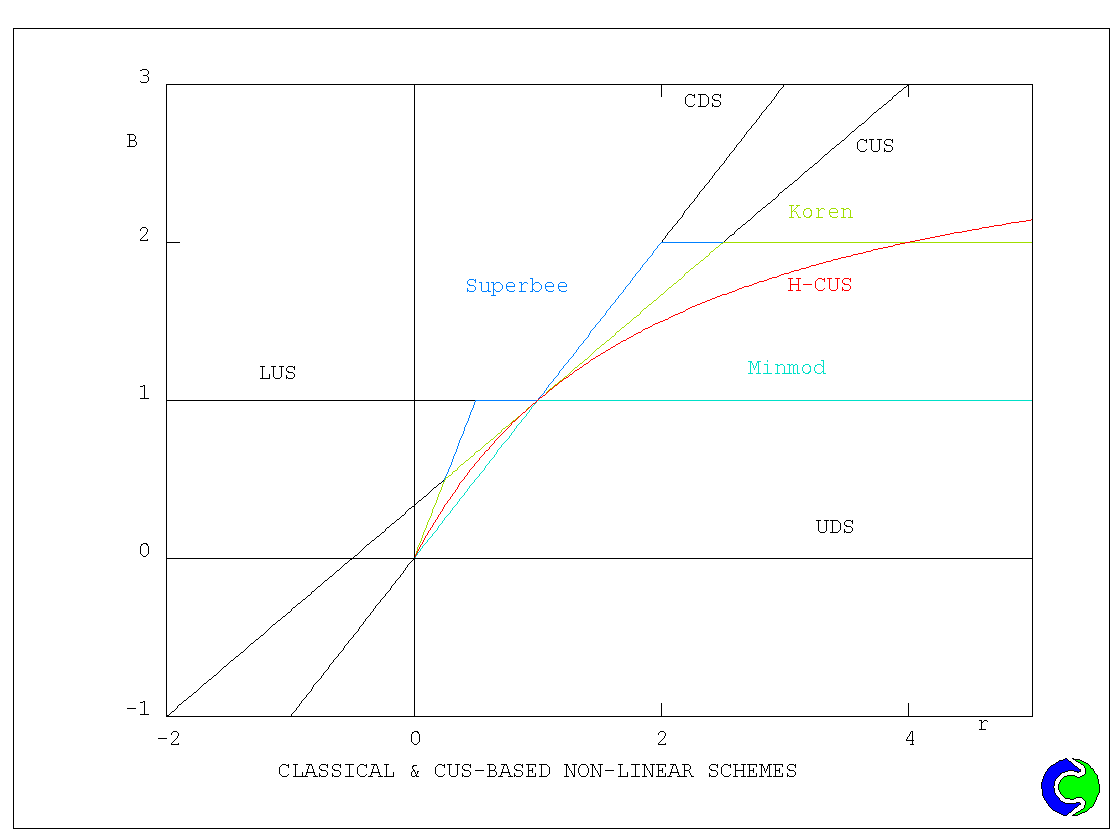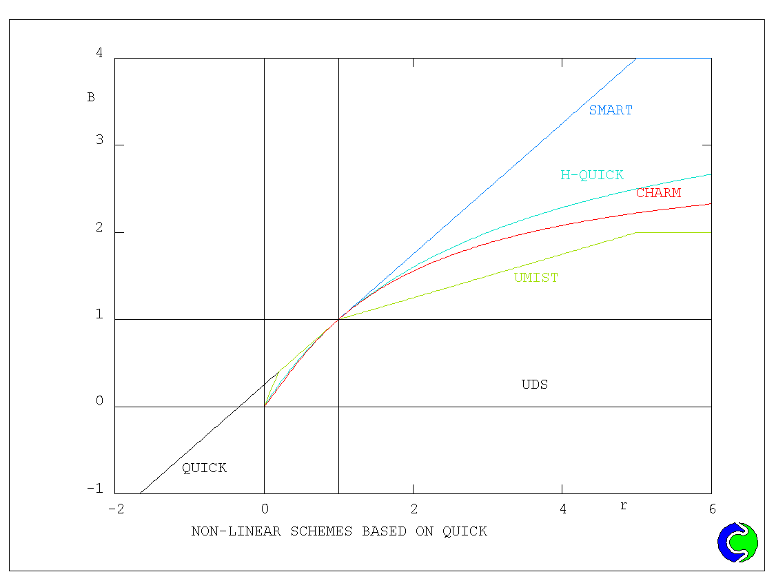 In PHOENICS, the various higher-order schemes are implemented by