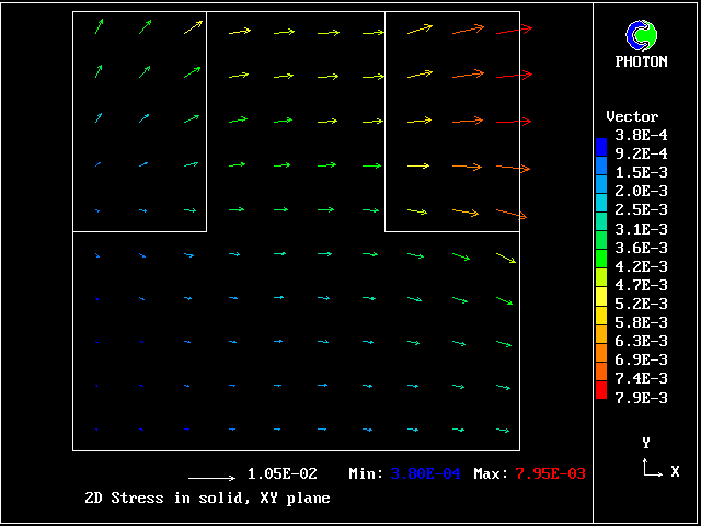 The outcome is the stress fields which may be viewed by PHOTON. The use file for the latter is supplied.