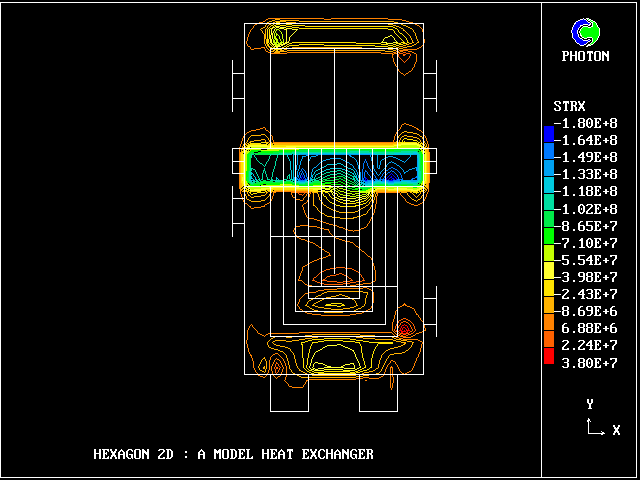 The fluid movements, temperature distributions and stresses in materials will be shown for a model heat exchanger.