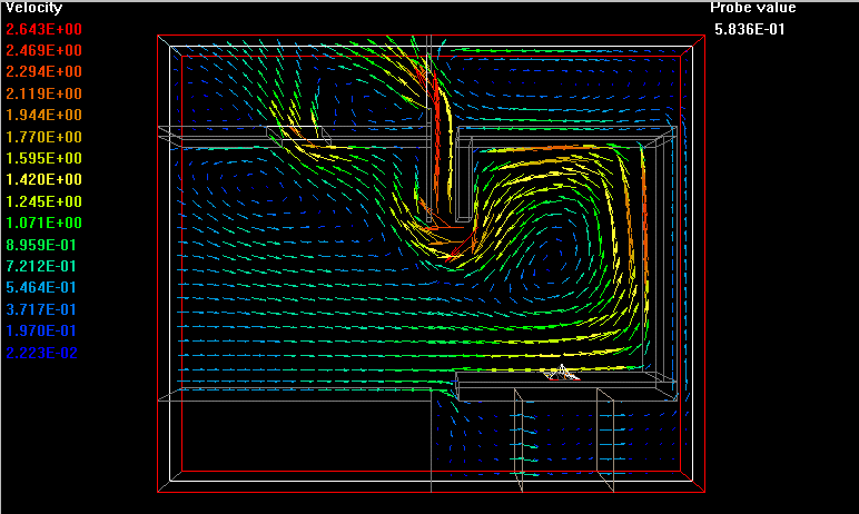The simulation shows if the ventilators are capable of extracting the smoke.