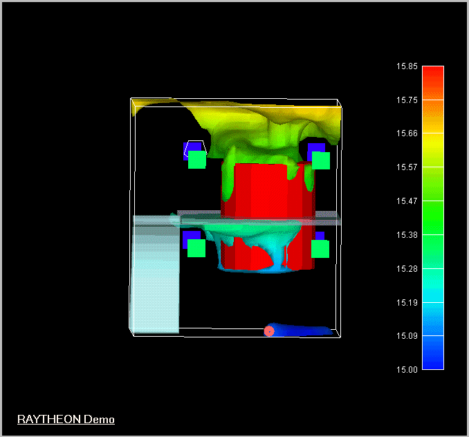 The two following animations were created from pictures of the standard VR Viewer. In the first one, some objects are hidden for viewing purposes, in the second one, the objects are outlined. The picture of the streamline was also taken in the VR Viewer.