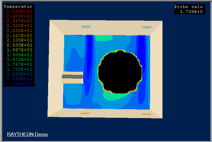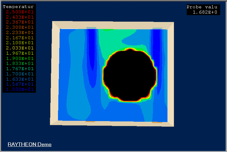 First, some plots of temperature contours in different planes are given, with both post processors (VR Viewer and S-photon). Then, isosurfaces are displayed using S-photon, showing the very good quality of its graphics.