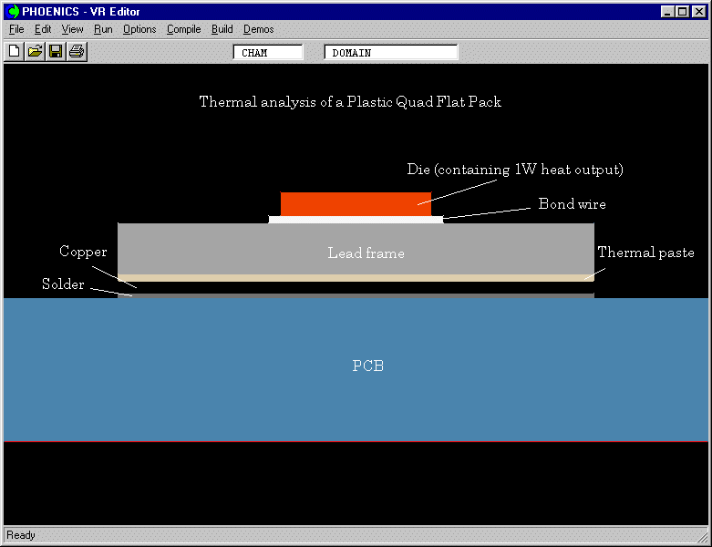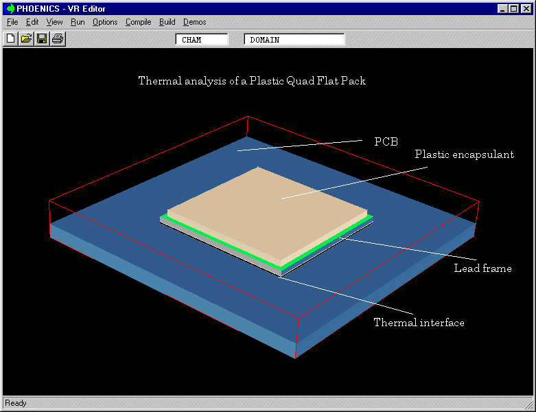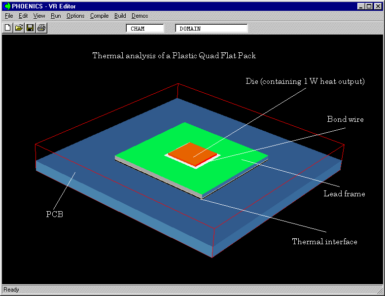 - The PQFP studied here is a compact CFD model sitting on a PCB, comprising the die, the die attach, the lead frame, the bond wire, the plastic encapsulant and the thermal interface;