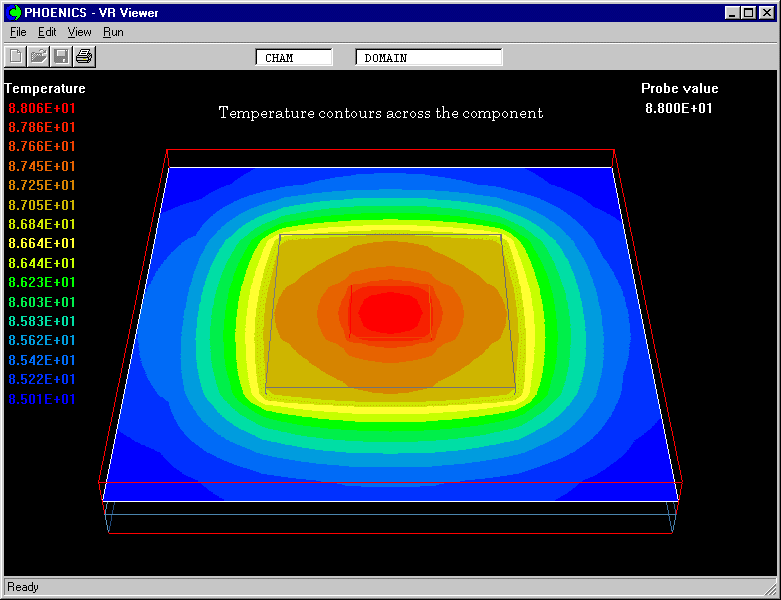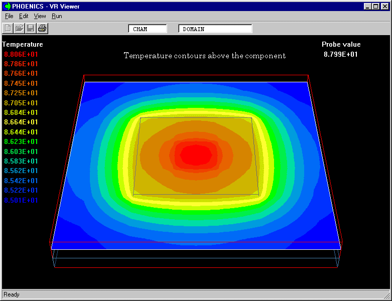 Temperature contours above the component