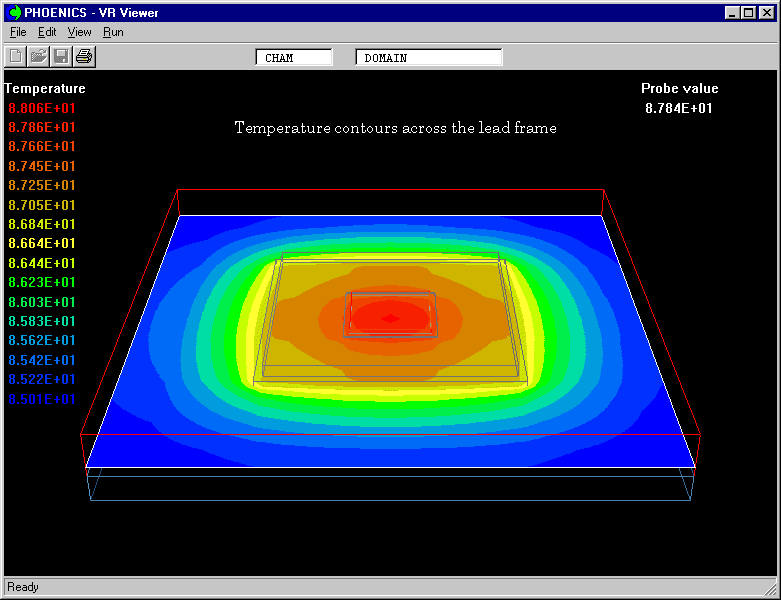 Temperature contours across the lead frame
