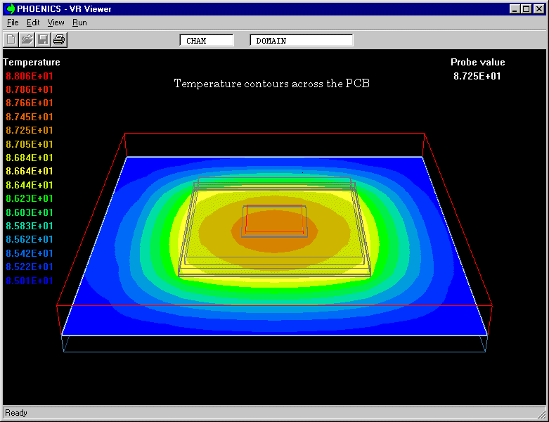 Temperature contours across the PCB