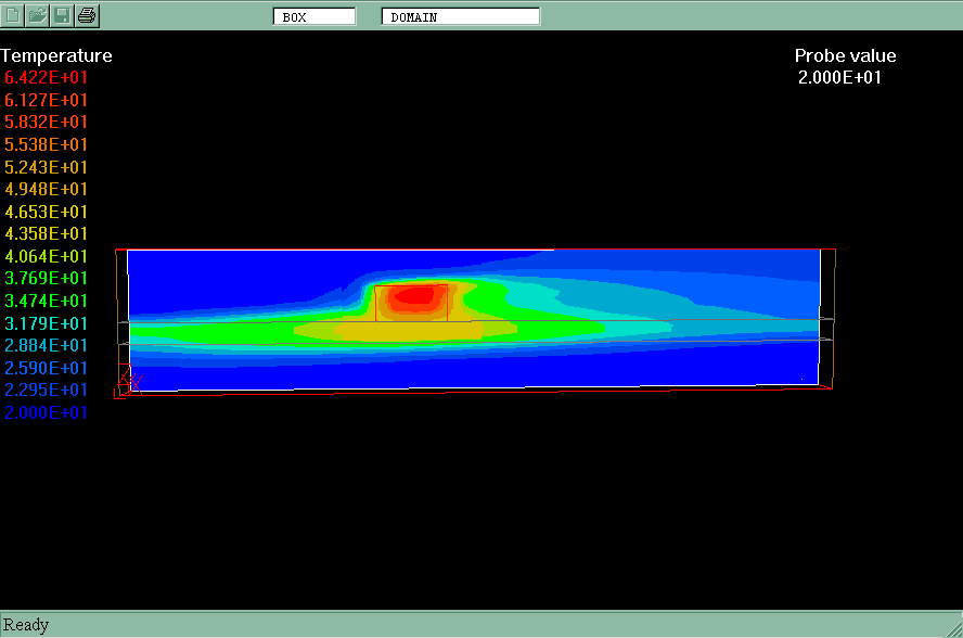 Computational grid has been made twice as fine around the heated component mounted on conductive PCB in a counter-current Air Flow Through module.