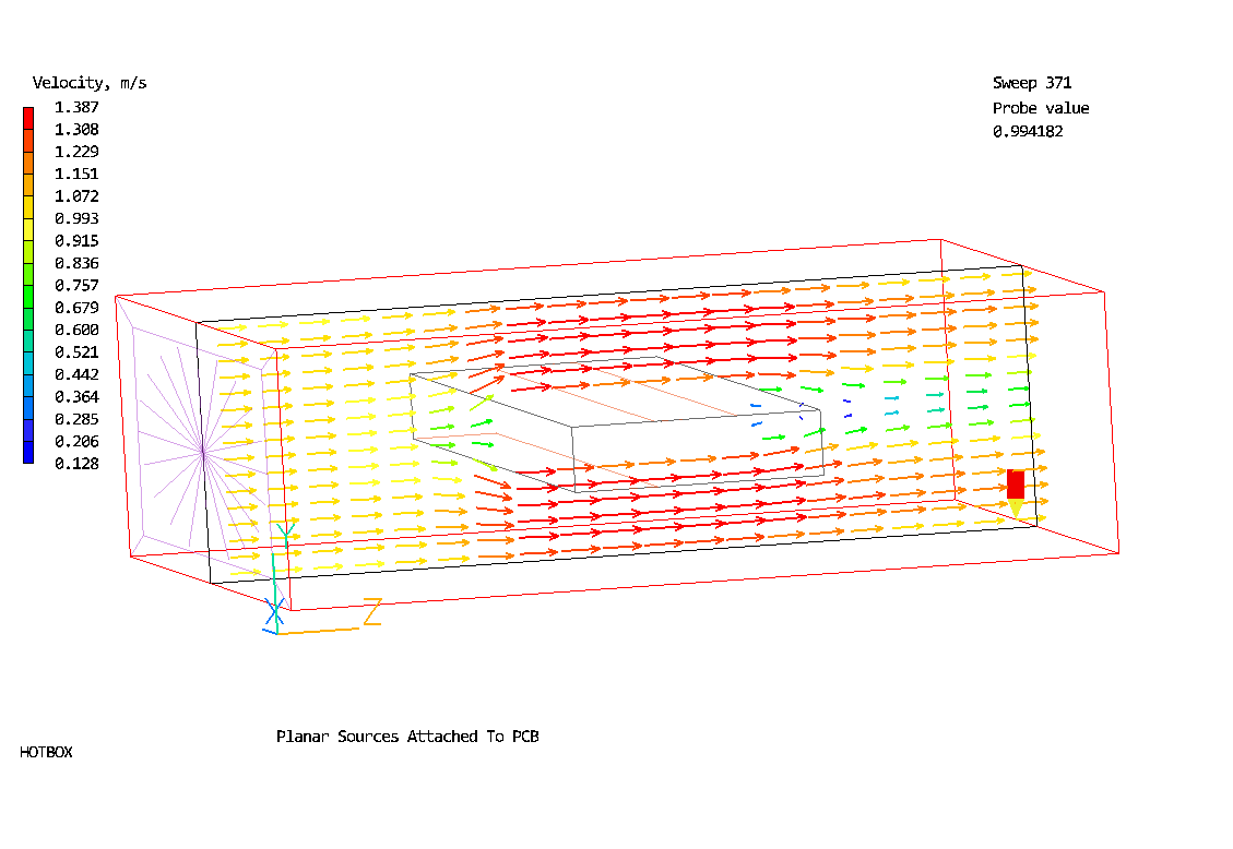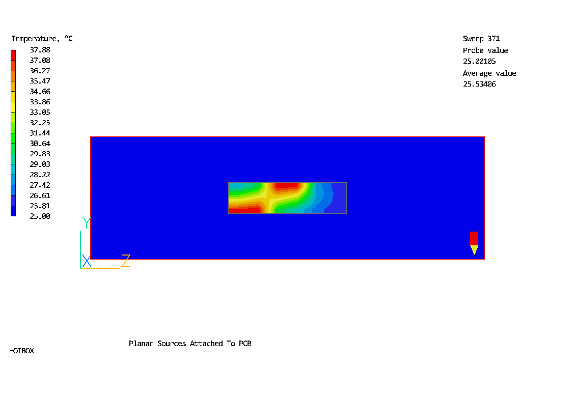 Two planar sources are attached to the north and south faces of PCB to model surface mounted packages.