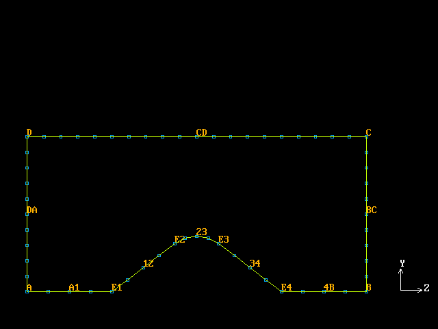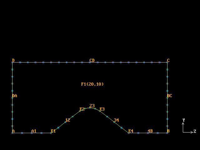 GSET(L,A1,A,E1,4) GSET(L,12,E1,E2,4) GSET(L,23,E2,E3,4,ARC,0,Y2,0) GSET(L,34,E3,E4,4) GSET(L,4B,E4,B,4) GSET(L,BC,B,C,10) GSET(L,CD,C,D,20) GSET(L,DA,D,A,10)