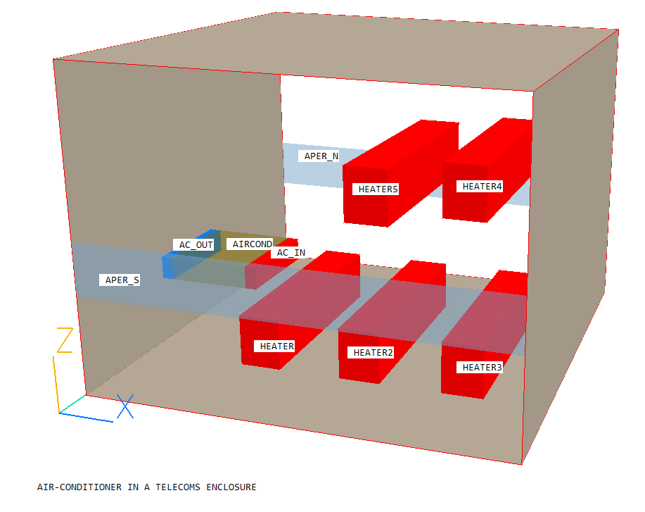 The following instructions will allow the user to set up and run the simulation of an air-conditioner in a telecom enclosure in VR. The enclosure contains heat dissipating equipment and an air-conditioner which removes heat. The case demonstrates the use of linked anlged-ins to model an air-conditioning unit.