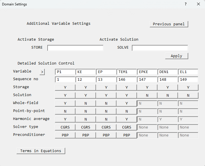 Click on 'Stone' next to 'Solver type' in the 'P1' column, and select 'CGRS'. This will select the CGRS solver for all variables. After clicking 'OK', the dialogue should look like this: