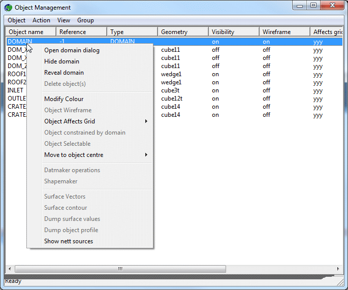 Click on 'OK' to close the Domain Faces Dialogue Box, and 'OK' again to close the reminder to set / check boundary conditions. The default conditions are fine.