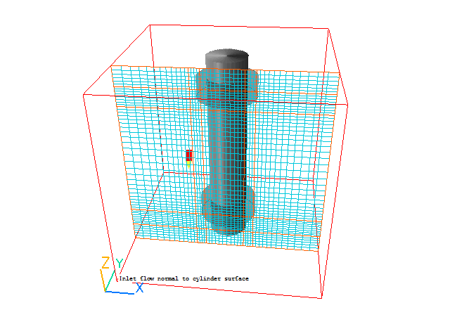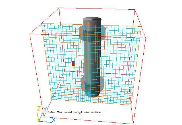 Note that the shape and size of the angled-in object do not really matter - what matters is the size and shape of the area of intersection between it and any blockage which it overlaps. In this case the active inlet area will be the outer surface of the COLUMN object which lies within INLET.
