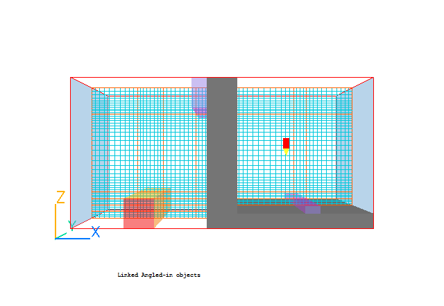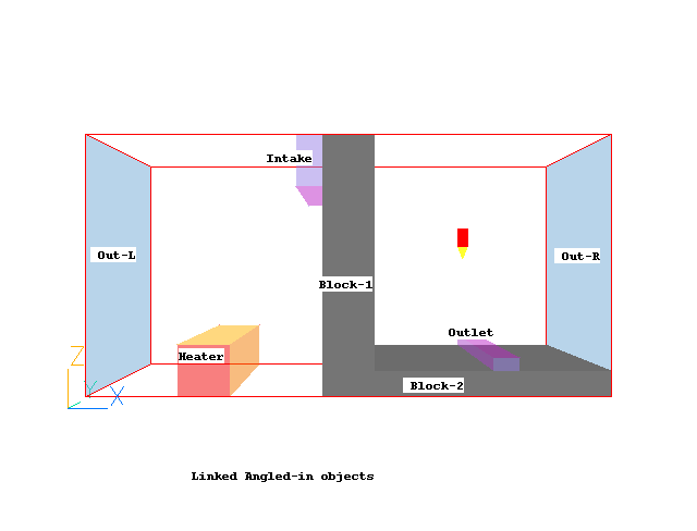 Note that the shape and size of the angled-in object do not really matter - what matters is the size and shape of the area of intersection between it and any blockage which it overlaps. In this case the active outlet area will be the outer surface of the BLOCK-2 object which lies within OUTLET.